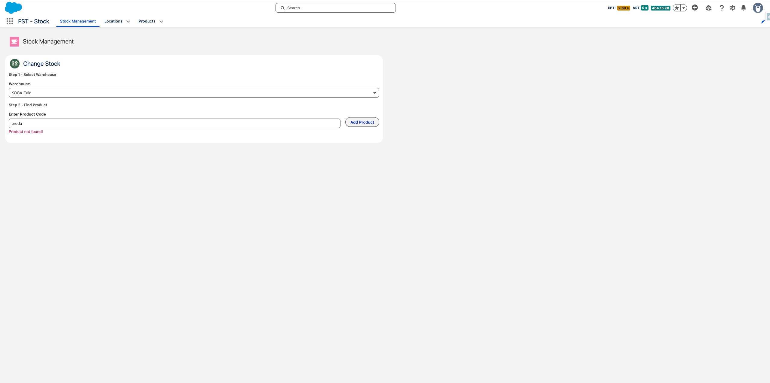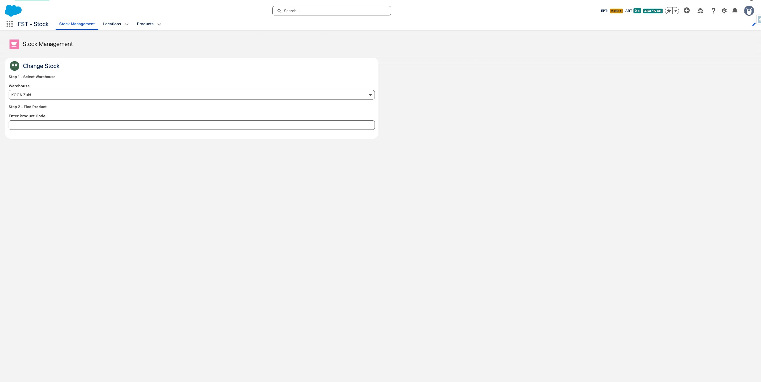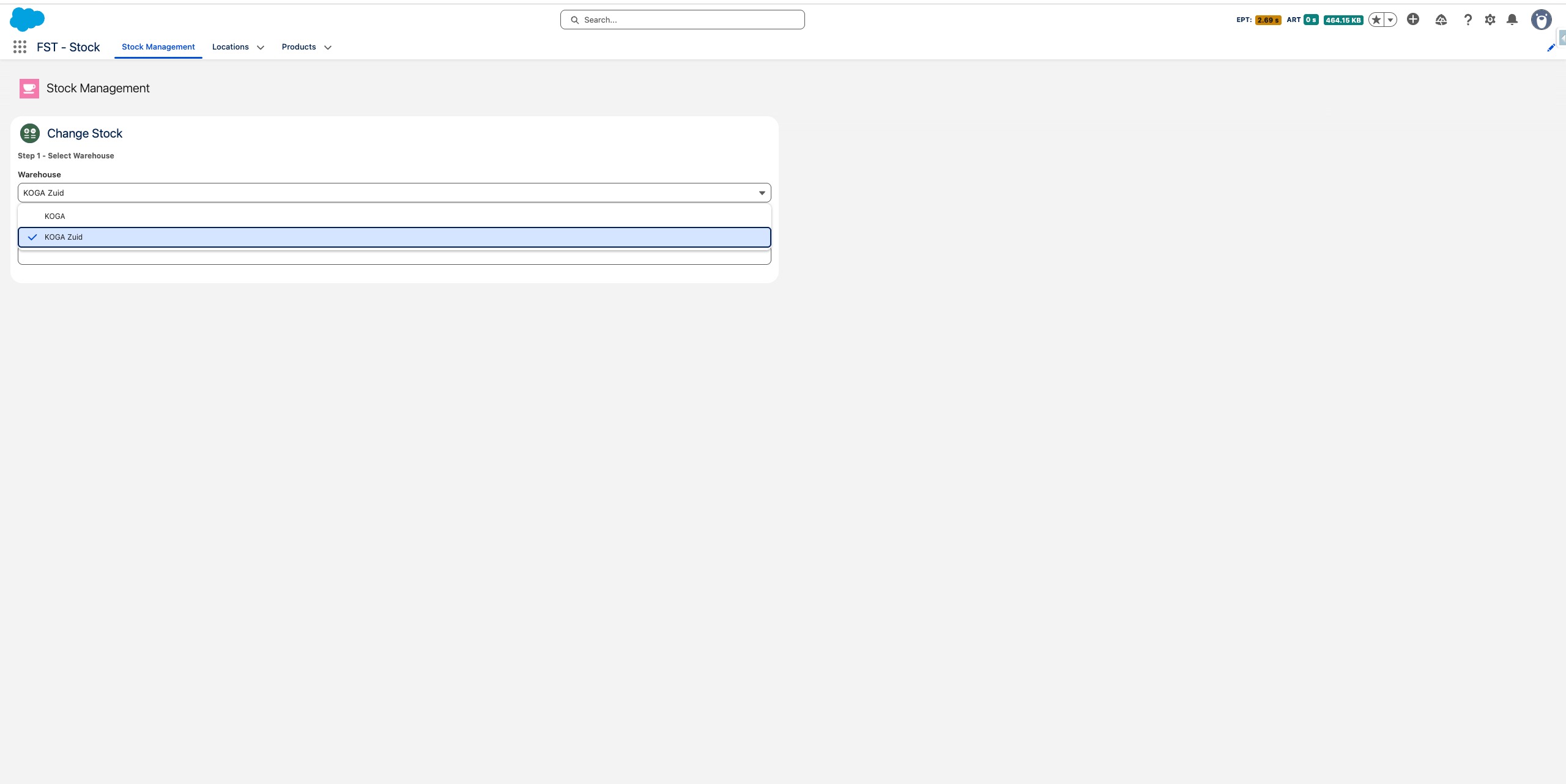 Selecteer het magazijn waarin je wilt werken. Je selectie wordt onthouden voor de rest van de sessie, maar kan op elk moment worden gewijzigd.