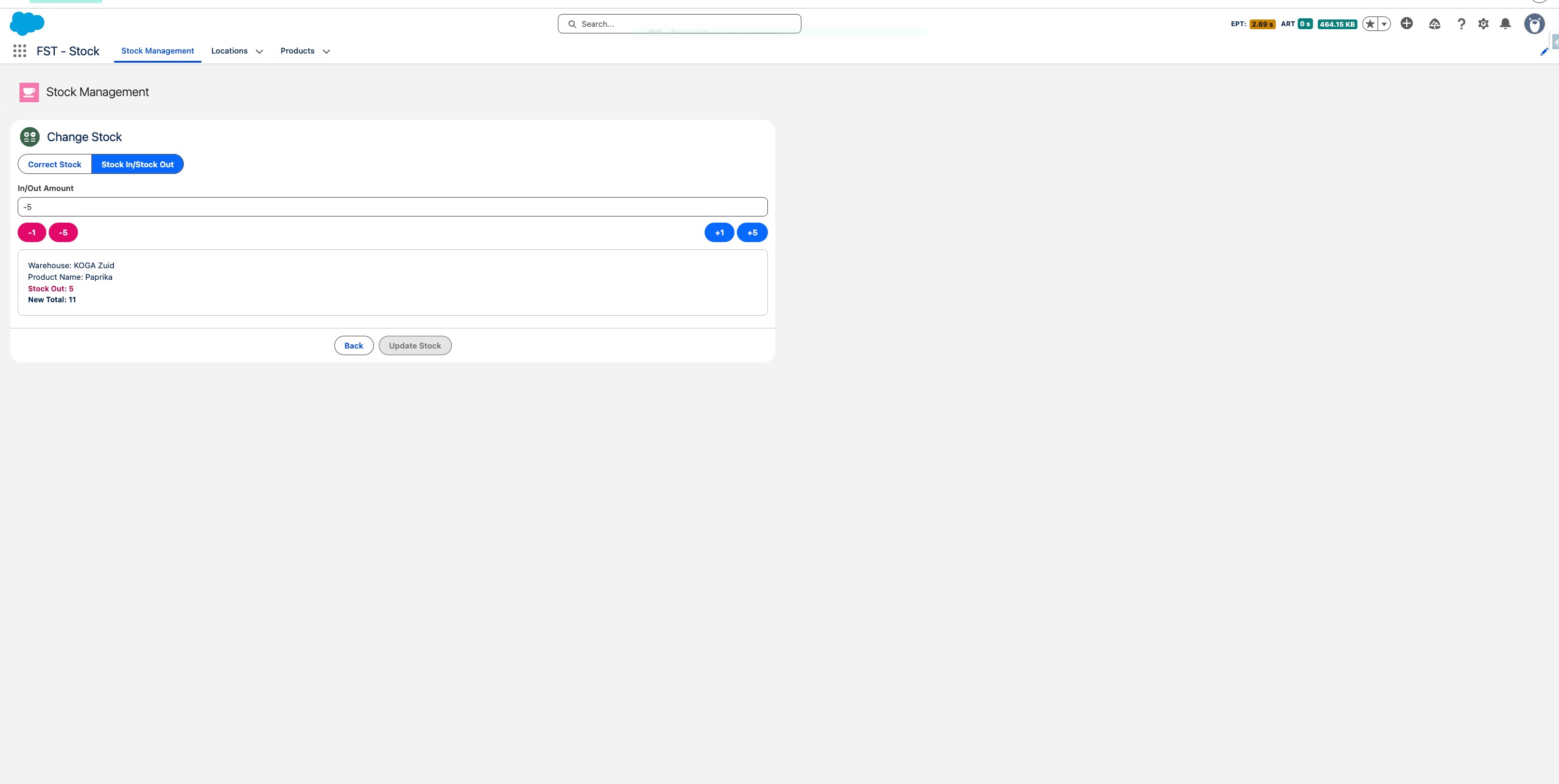 Om een voorraadafname te registreren, gebruik de afnameknoppen of typ een negatief bedrag