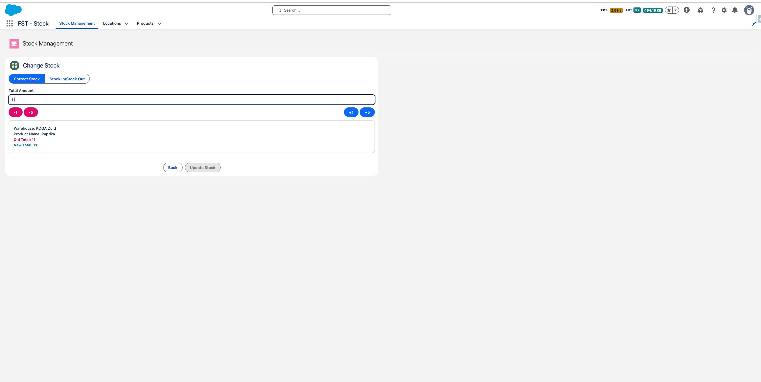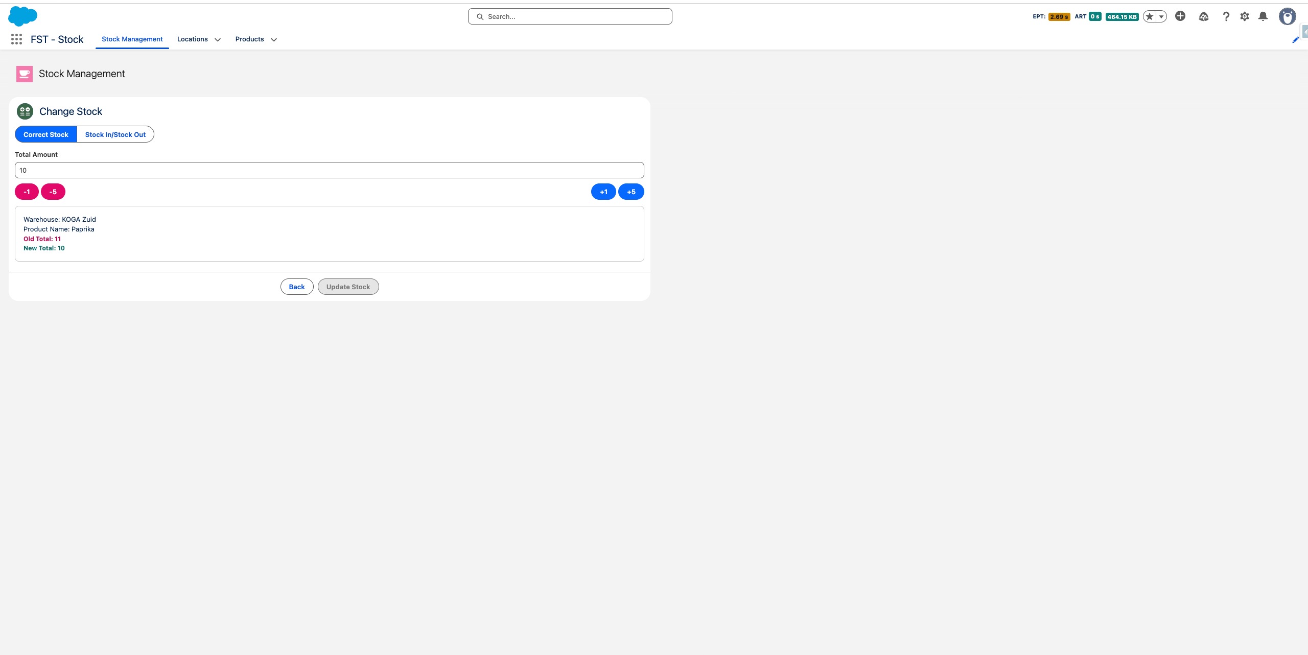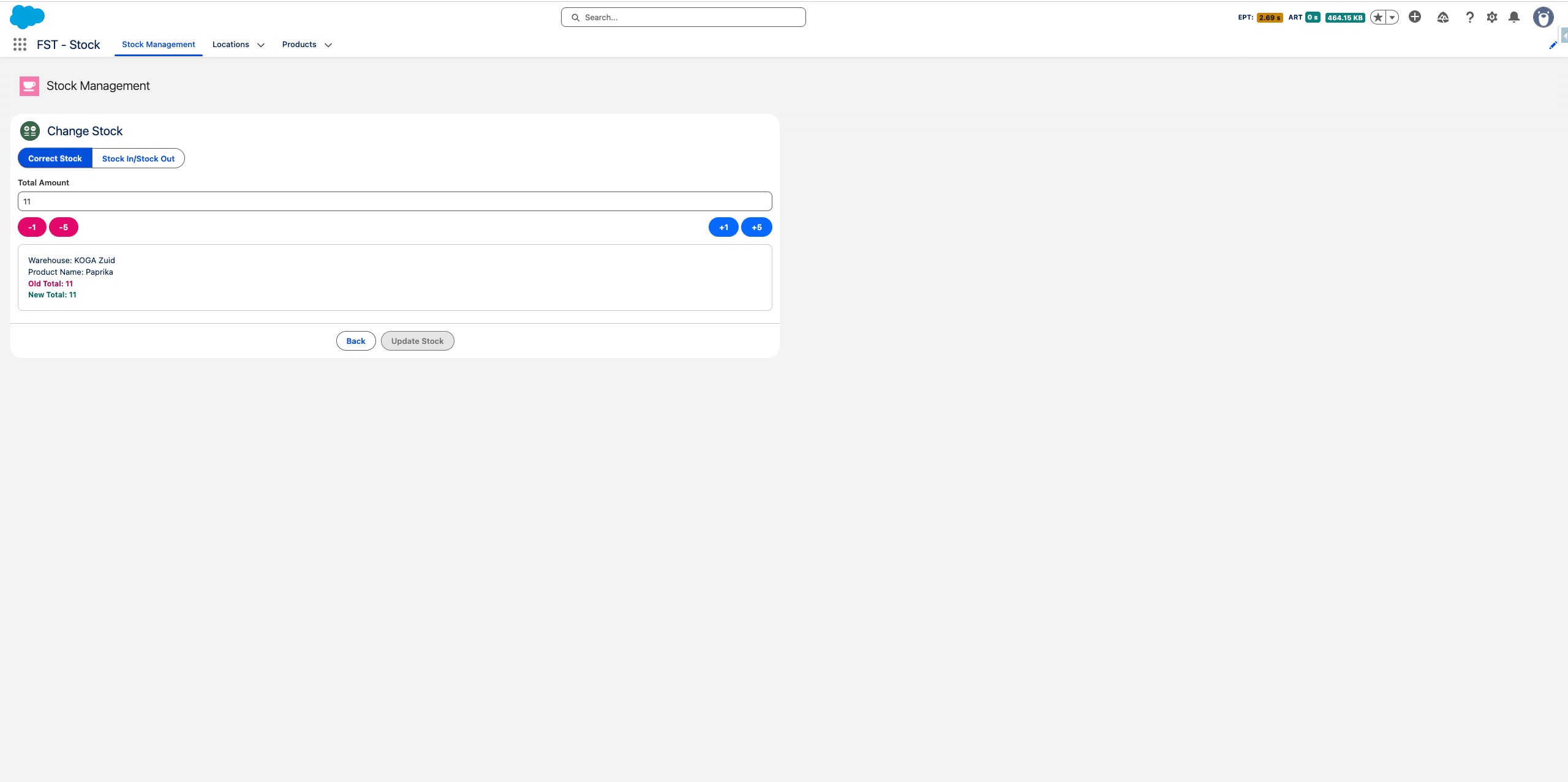 Schakel over naar Correcte Voorraad als je het totale bedrag direct wilt instellen - handig bij het doen van een fysieke telling.