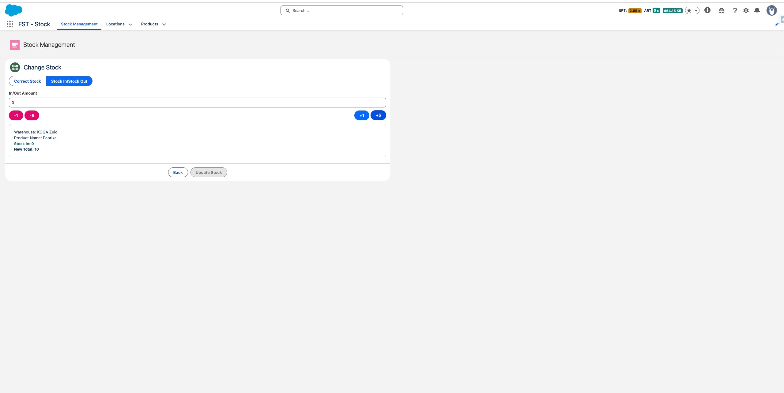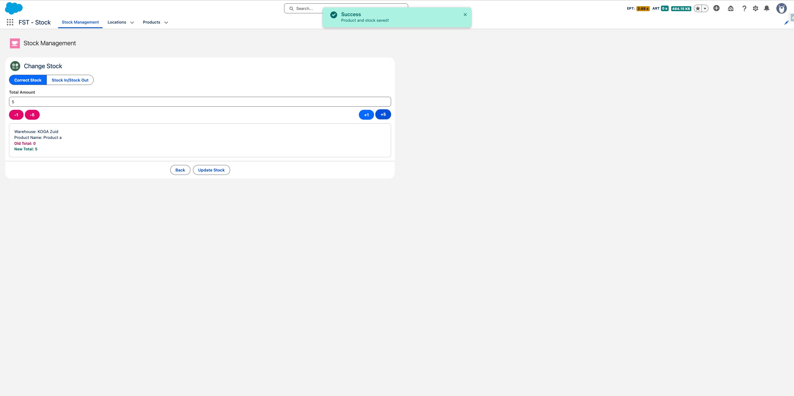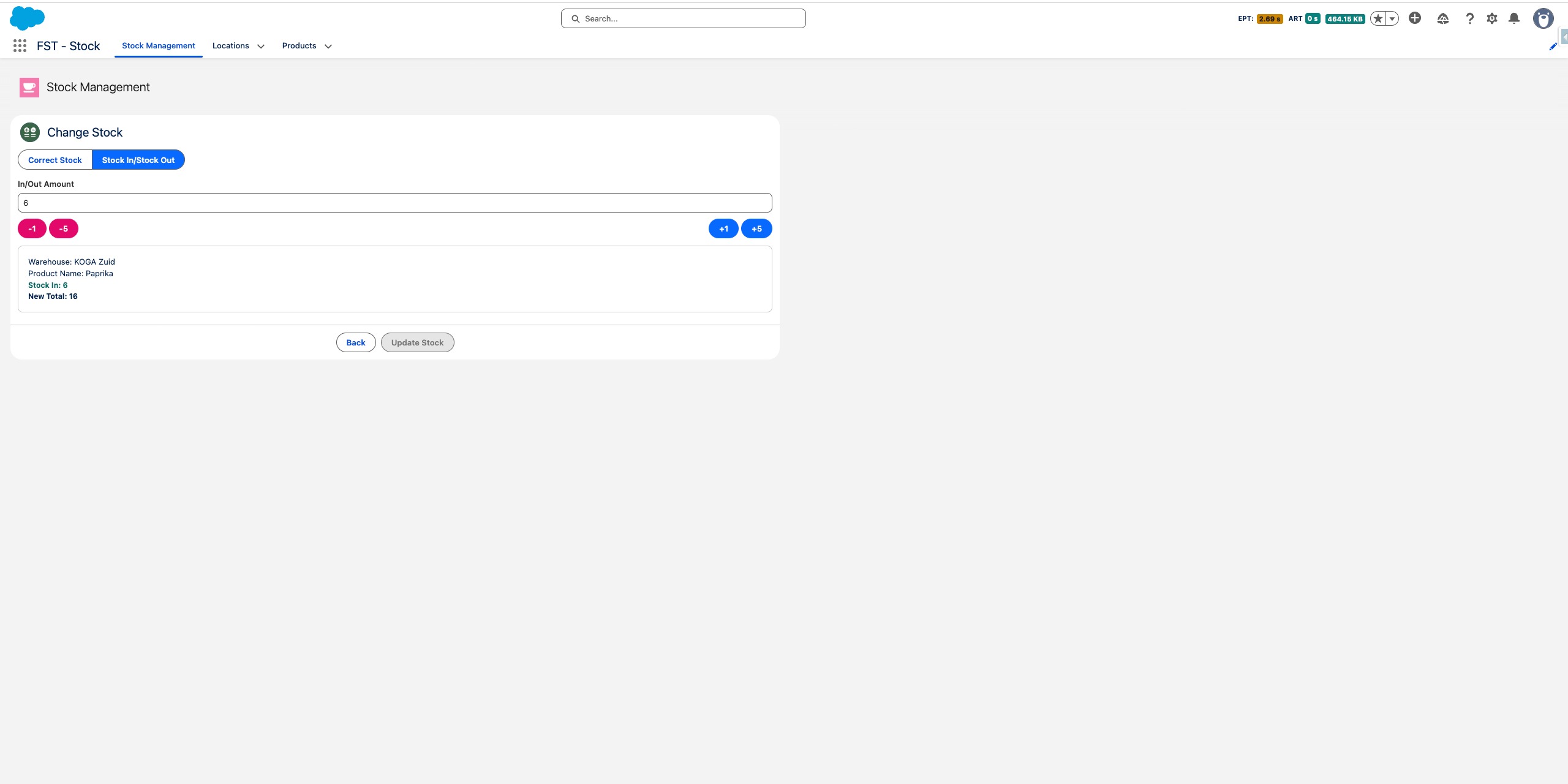 Schakel over naar Correcte Voorraad als je het totale bedrag direct wilt instellen - handig bij het doen van een fysieke telling.