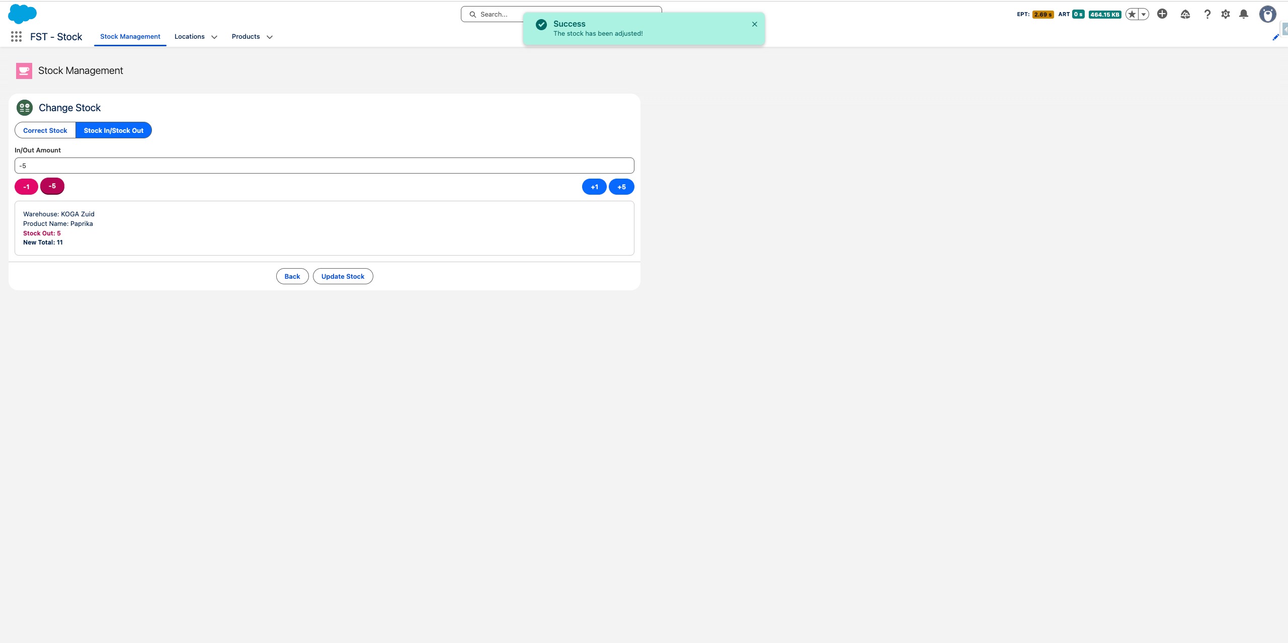Druk op Voorraad Bijwerken om de transactie te bevestigen en op te slaan.